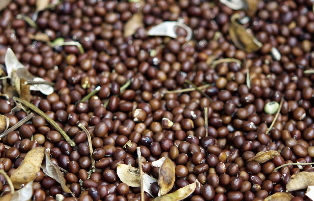 育てている大豆は、かつてこの土地で育てられていた在来品種の「茶大豆」と「青大豆」。農薬・化学肥料を使わずに栽培した大豆を収穫し、約一年かけてじっくりと発酵・熟成させた「青大豆味噌」「茶大豆味噌」を、毎年数量限定で製造しています。
