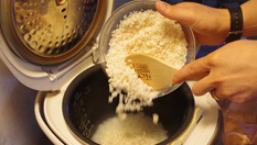 炊いたご飯にお湯300mlを加えしっかり混ぜる。
