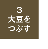 少し熱がとれたら大豆をビニール袋に入れ、口を縛る。手のひらを使って上から力強く押して大豆をつぶす。粒をなくすようなつもりで、ぐいっと力を入れて押すのがコツ。