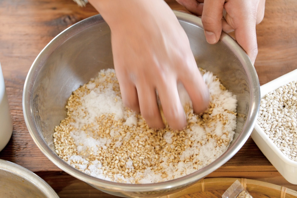 1.麹と塩を混ぜる