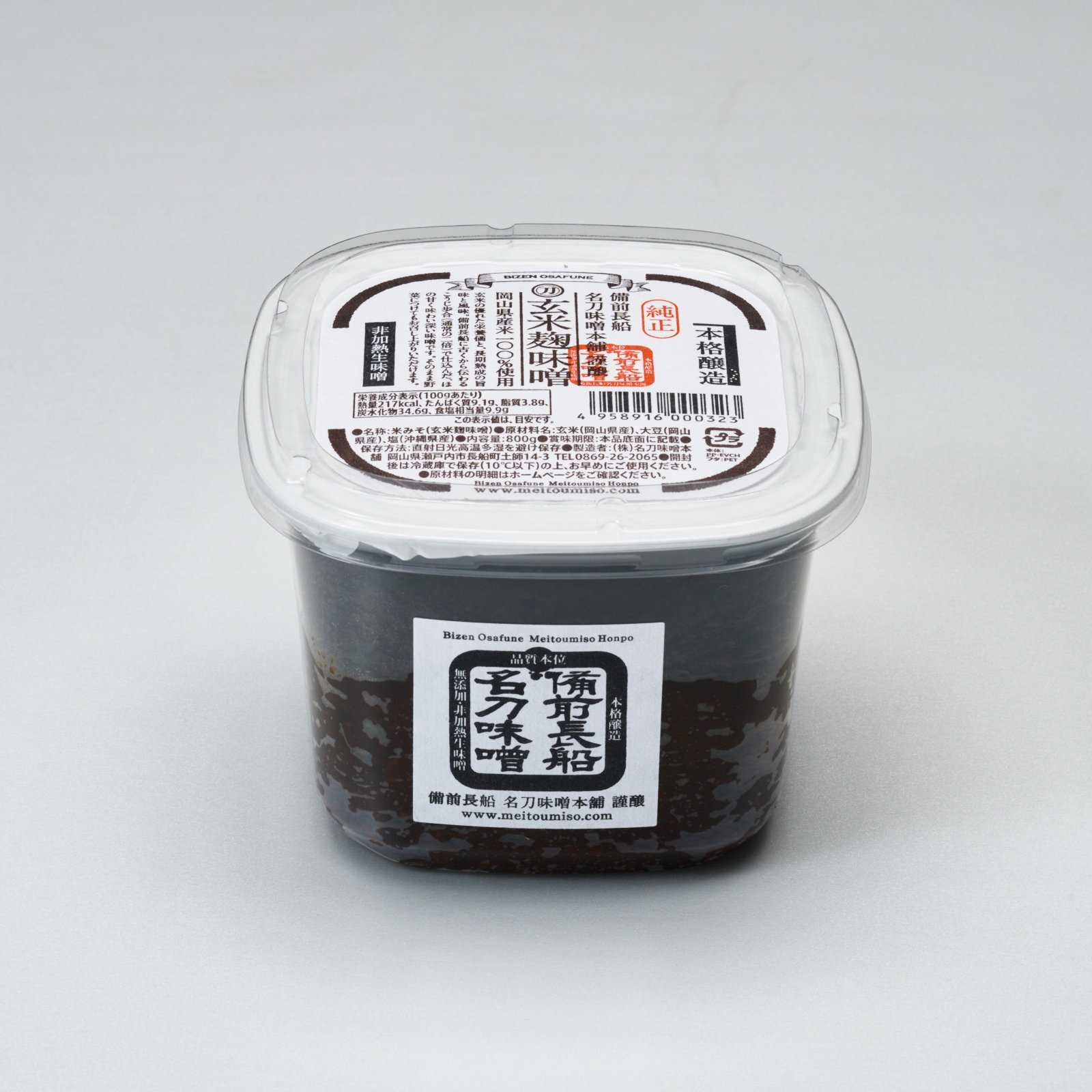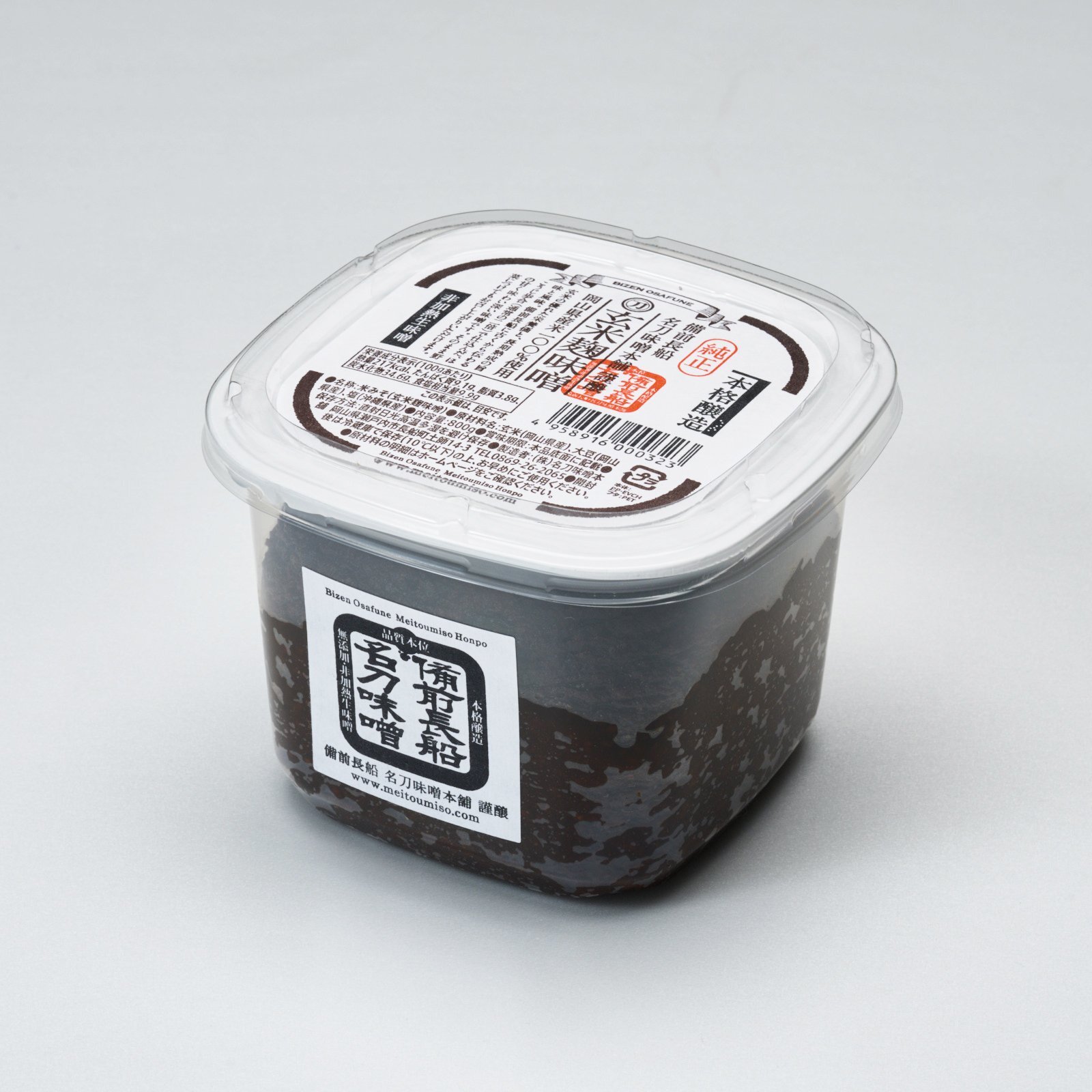 玄米の優れた栄養価と、長期熟成による深い旨みと豊かな風味をあわせ持つ、名刀味噌本舗の玄米麹味噌です。備前長船に古くから伝わる麹歩合(通常の約2倍)で仕込むことで、玄米麹がもつ自然な甘みとコクがしっかりと引き出され、ほの甘く味わい深い味噌に仕上がっています。