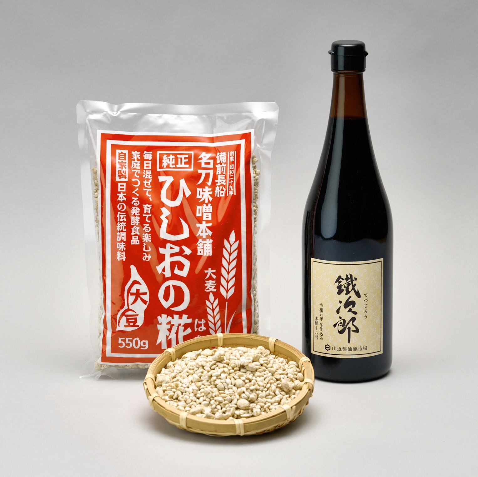 ひしおの糀と鐵次郎を合わせて、ご自宅で気軽に本格的なひしお作りをお楽しみください。