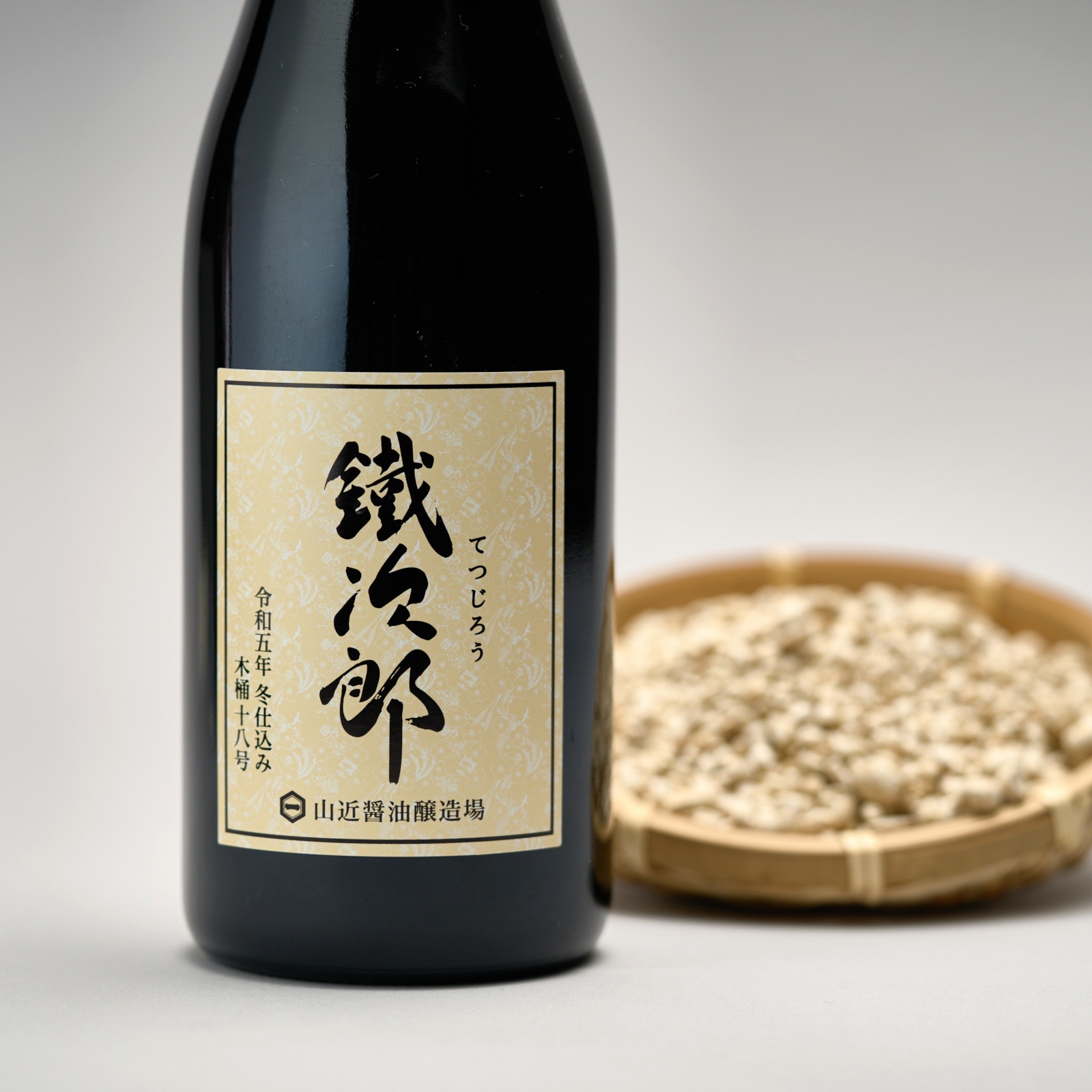 代表銘柄「鐵次郎」は、岡山県産丸大豆・小麦、天日塩のみを使用し、木桶仕込みによる天然醸造。麹造りには木製の麹蓋を用い、全国でも珍しい伝統的な手造り製法を守り続けています。煮物やかけ醤油はもちろん、洋食にも幅広く使える芳醇な味わいが特長です。